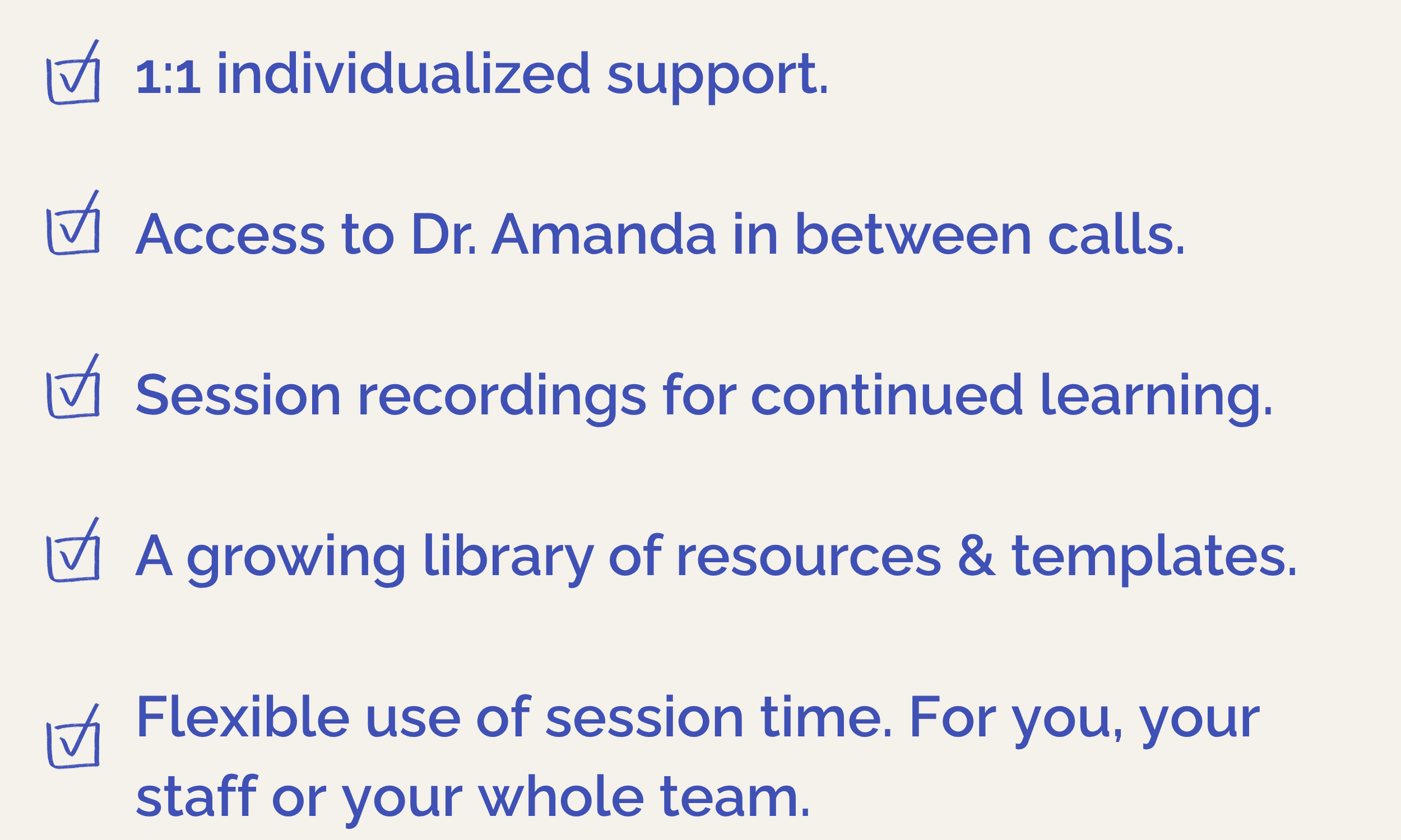 Every session is 1:1 tailored to your needs, goals, & capacity. Personalized, strategic support designed for how you work best.